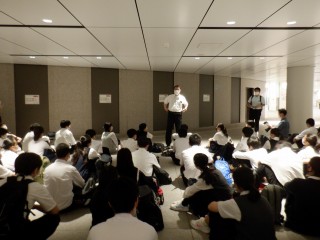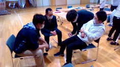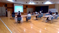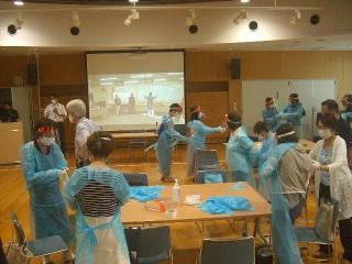 【震災救援所】総会後に防護服の着用方法についての研修会を実施しました。