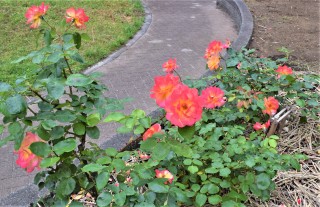 【アンネのバラ】泉南中の花壇で美しく咲いています。