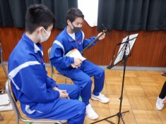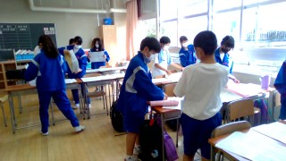 【小中合同研修】方南小学校の児童が来校し、中学校の体験授業を受けました。