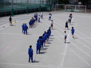 【運動会全体練習②】開・閉会式と全員リレーの入退場の練習を行いました。