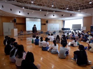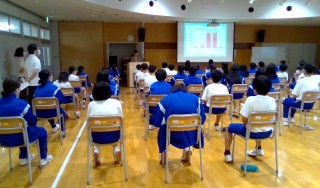 【口腔保健指導】1年生は、口腔指導を受けて歯の健康について考えました。