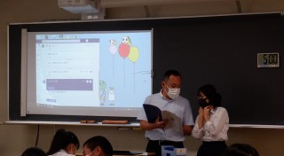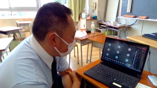 【Teams練習】タブレットでTeamsの練習を行いました。リモートで先生の質問に答えている様子です。