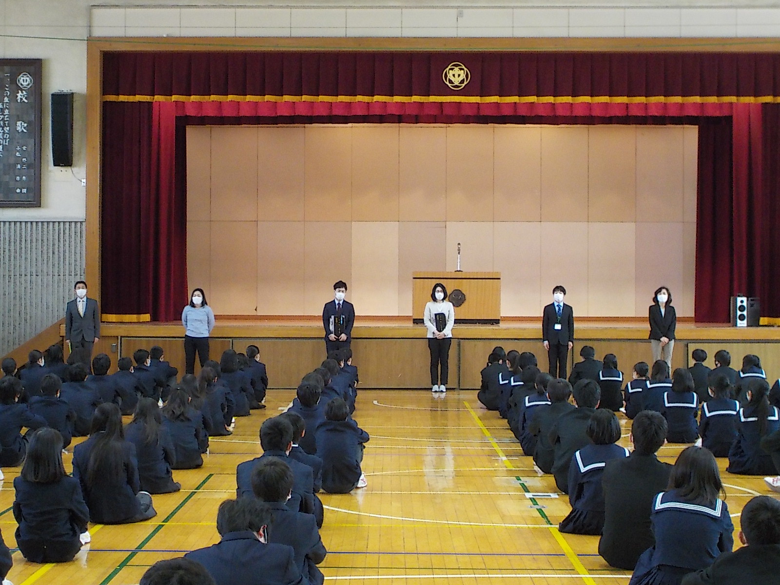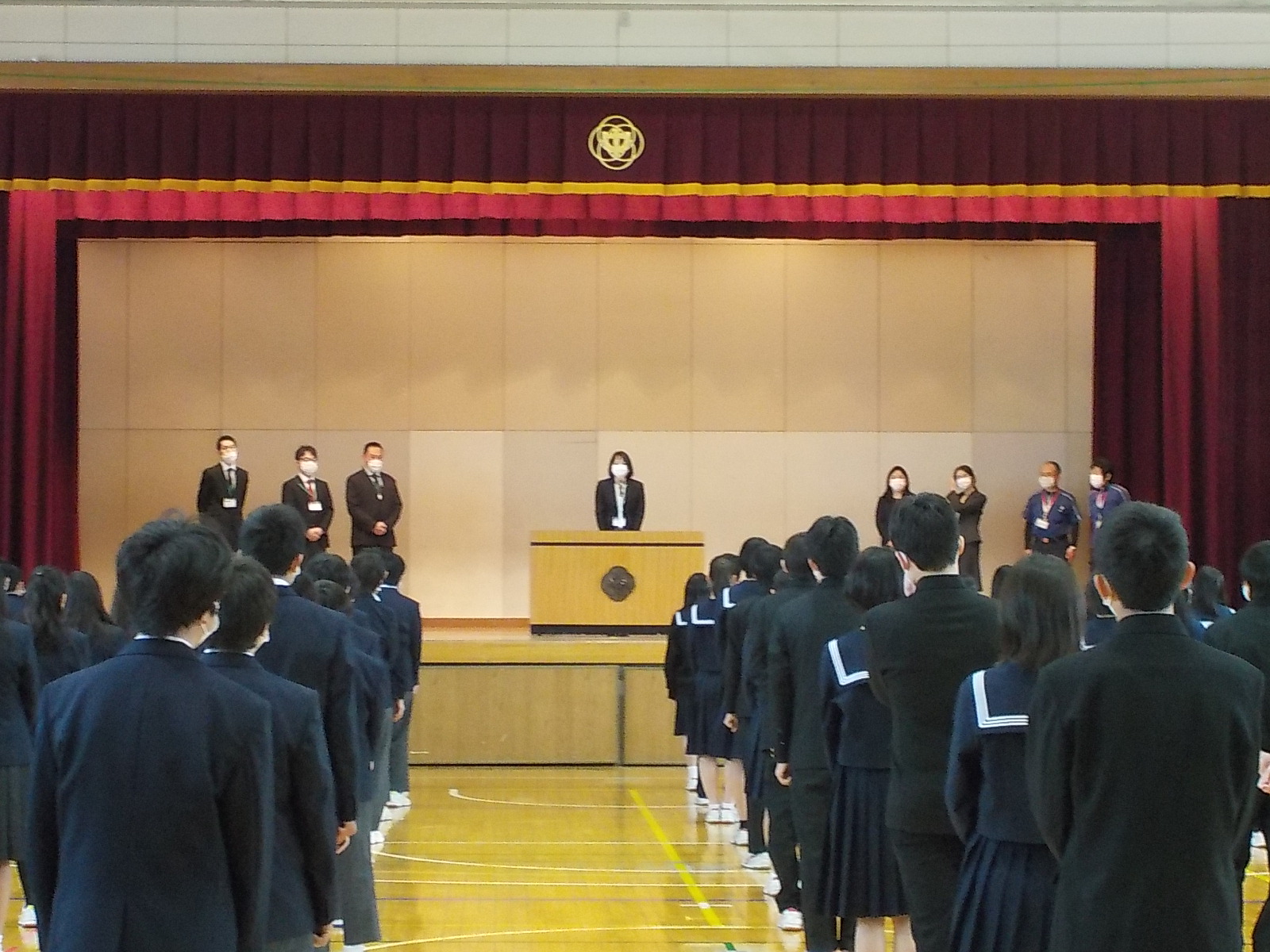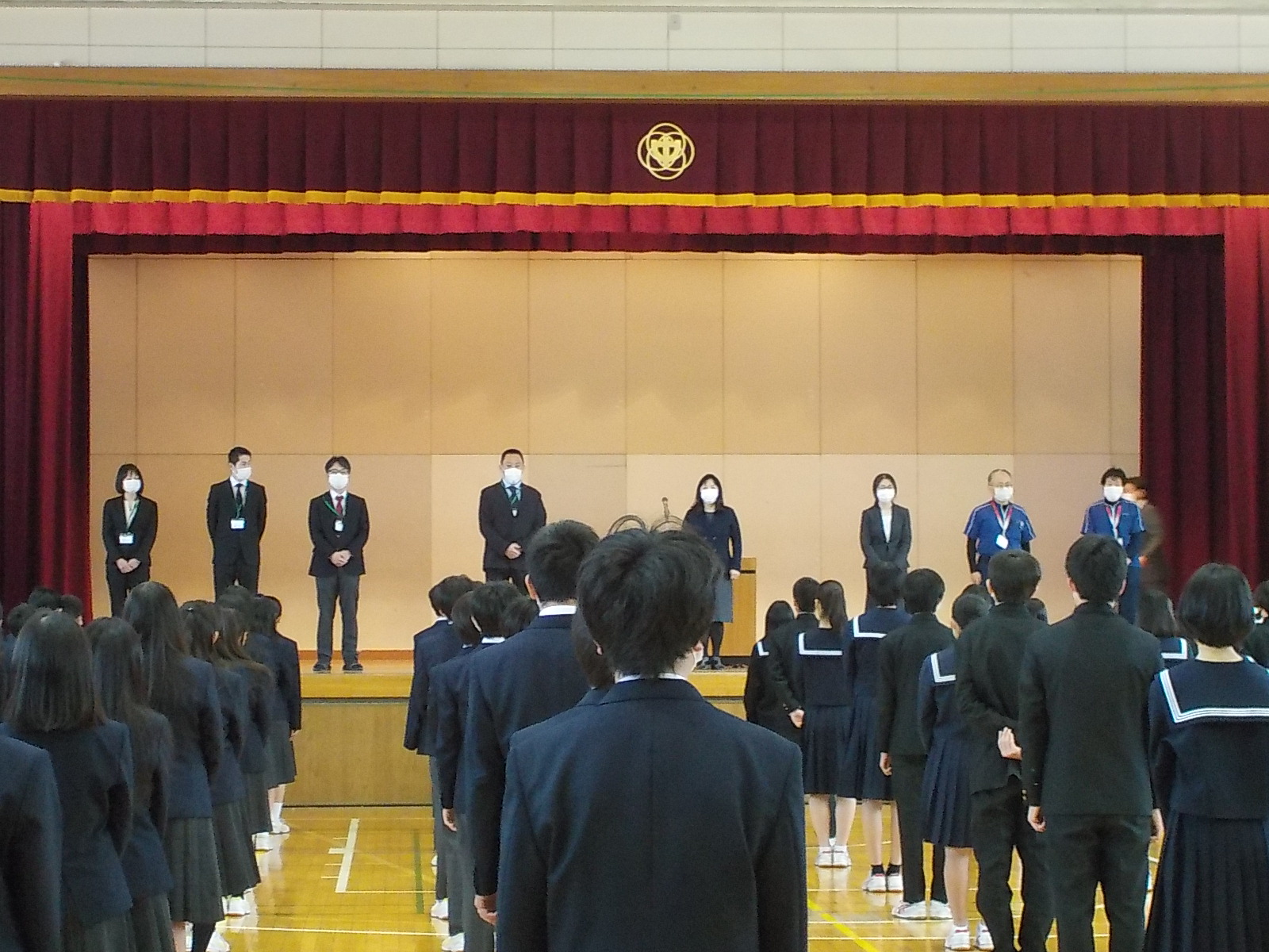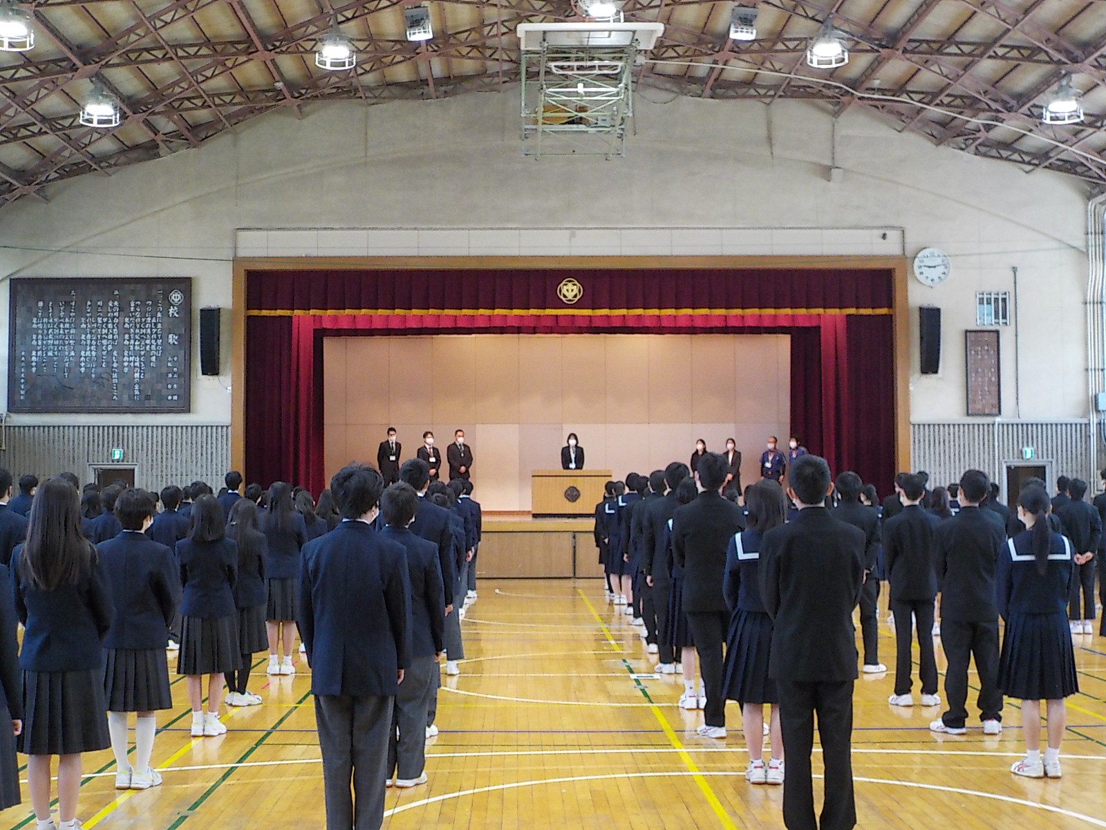 【着任式・始業式】新クラスと担任・所属の発表、転出・転入教職員の紹介がありました。新2・3年生、新たなスタートです!