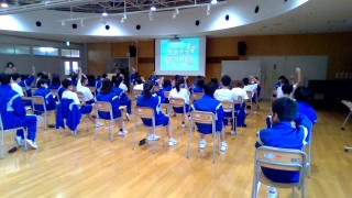 【食育セミナー(1年生)】総合の時間に「熱中症予防」についての講習を受けました。