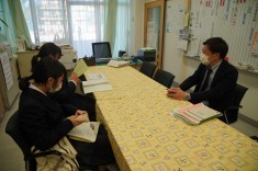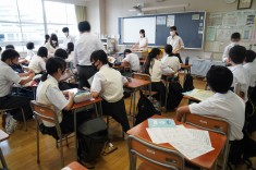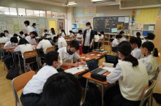 【授業見学 1年生道徳】A組は「街にごみ箱は必要か」とのテーマでディベートを、B組は「古びた目覚まし時計」を題材に
