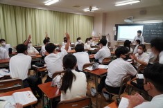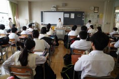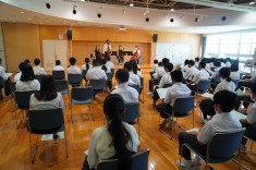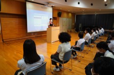 【1学年職業講話】1学年の総合的な学習で、マクドナルドの方とテレビ番組の編集作業をしている方2名をお迎えして職業講話を行いました。