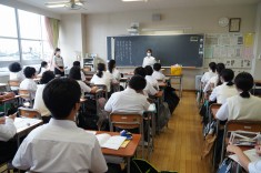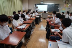 【授業見学 1年道徳】芸能生活50年をむかえた男性歌手の生涯から、その生きざまを学びました。