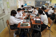 【生徒総会】令和4年度の生徒総会が行われました。昨年度からペーパーレスを進めていて、議案書はタブレットで確認しています。.jpg)