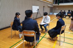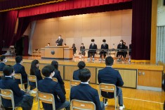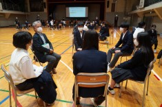 【意見交換会】3年生が地域の方々と意見交換会を行いました。テーマは「幸せとは」。各グループとも積極的に意見を出していました。.jpg)