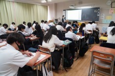【2学期始業式】9/1に2学期始業式が行いました。どの生徒も元気に登校しました。夏休みの宿題の追い込みや英検に向けての学習に取り組んでいました。