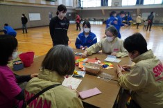 【フラッグ作成】地元商店街に飾られるフラッグを、ボランティア生徒が作成しました。