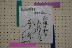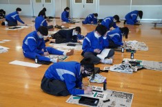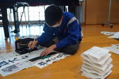 【授業見学 3年国語】多目的室で書初めの授業を行っていました。