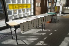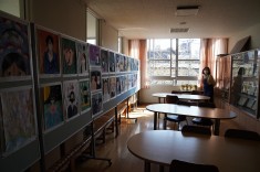 【卒業に向けて】学校では卒業に向けて、大掃除や3年生作の自画像の掲示などを行っています。