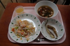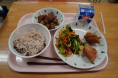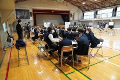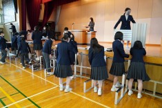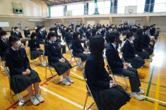 【卒業式予行】卒業式の予行を行いました。会場は3年生自らが片付け。給食はお祝いの赤飯でした。