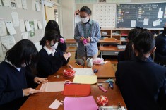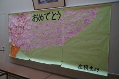 【卒業装飾】卒業式に向けて1年生が装飾の花を作成していました。