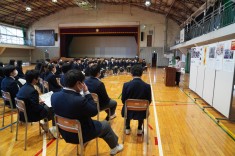 【1年学年集会】3学期のはじめに1年生は学年集会を行いました。「今学期は2年生への0学期」として、生活・学習に力を入れようと確認し合いました。