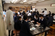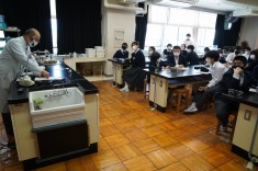 【1年理科教室】済美教育センターから講師を迎えて理科教室を行いました。いろいろな物質の「状態変化」を学びました。