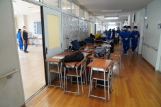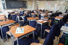 【避難訓練】地震を想定して、朝学活の時間に避難訓練を行いました。