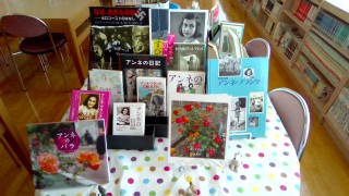 - 泉南中学校の図書室には、アンネ関連の図書を集めたコーナーを常設しています。