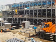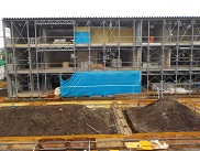 管理棟(校舎)の一部分が出来上がりました。全ての1階部分をつくり、積み上げていくかと思っていましたが、部分的に3階までつくってから横方向へと広げていくようです。