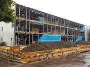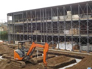 3分の2は骨組みですが、大分校舎らしい横長の建物になってきました。