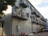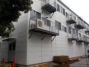 前と後ろの校舎がくっつきました。全ての壁面が完成しました。