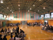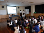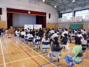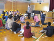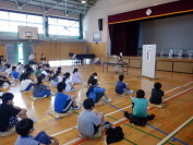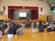 5,6年生は、体育館で外部講師の方からお話をうかがいました。