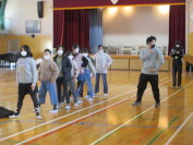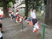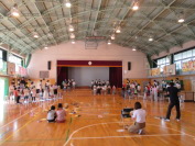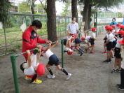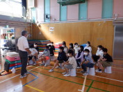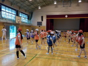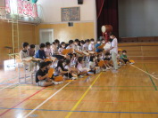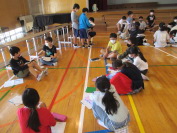 1学級ずつ、ボールの投げ方や取り方など、基本の動きを