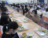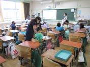 感染症対策のため、昼食は学校に戻ってお弁当を食べました。