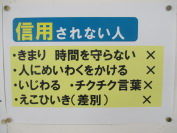 【お】さない、【か】けない、【し】ゃべらない、【も】どらない