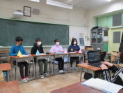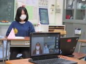 オンラインで、Q&A方式で中学校生活について交流しました。