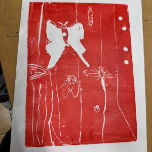 5月28日(水)の3.4校時の図工室では5年2組の子どもたちが版画の作成に取り組んでいました。彫刻刀を使って、版を彫り色のついた版画を完成させていました。どの子も夢中になっていました。