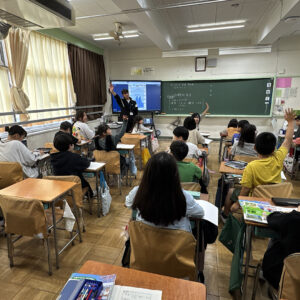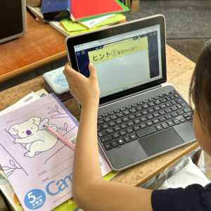 5月29日(木)1校時の4年4組の教室では、社会科の学習が行われていました。ここまで学んできた都道府県をクイズにして出し合うというアウトプットの時間でした。1人一台のタブレットPCを使って問題作りをしていました。1人で黙 […]