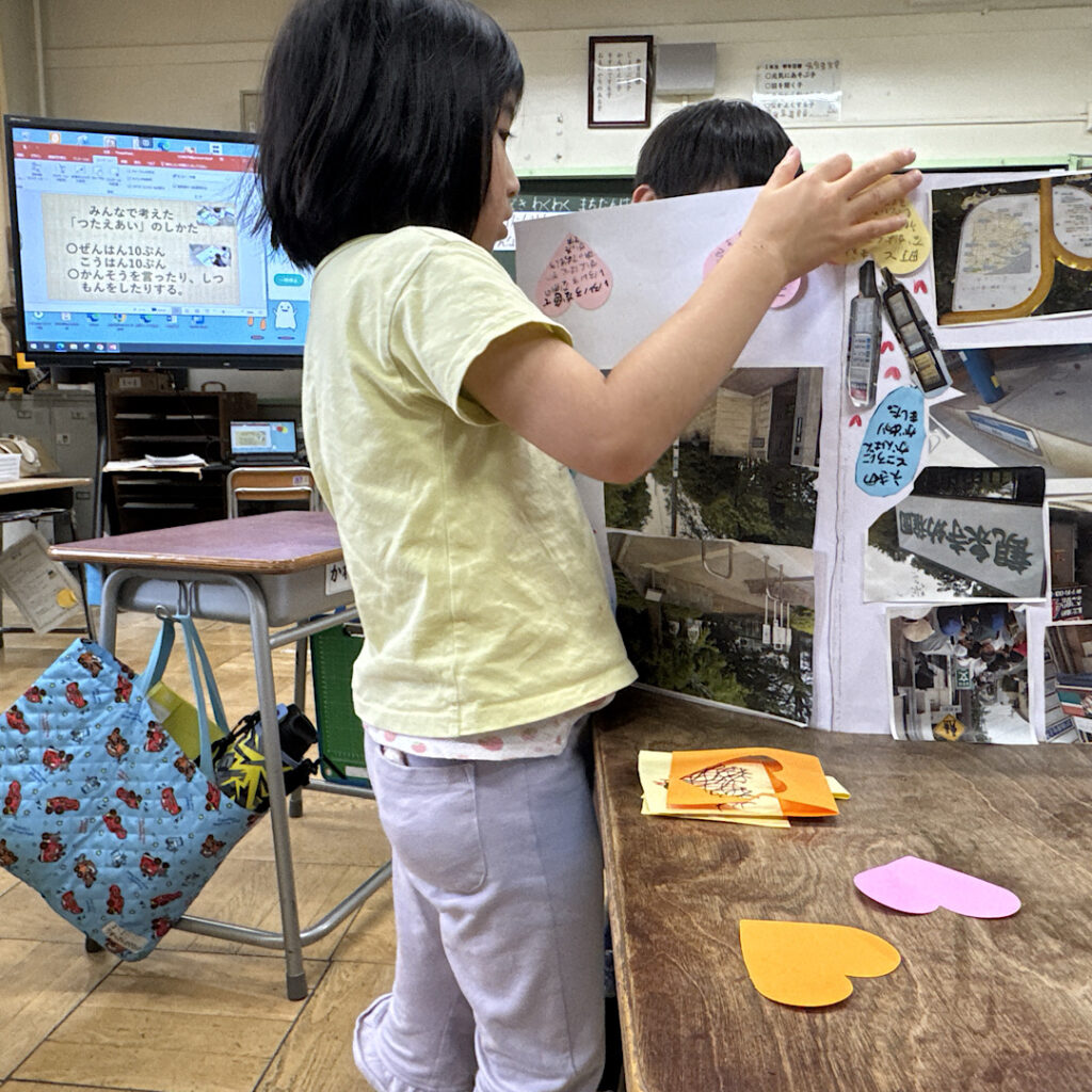 5月27日(火)5校時には、生活科の研究授業が行われていました。まちたんけんで見つけてきたことをみんなに伝えようというめあてでした。植物や道路、畑、遊び等、どのグループもそれぞれの視点をもって見つけてきたことを発表していました。たくさんの大人に参観してもらい、子どもたちはとても張り切って取り組んでいました。