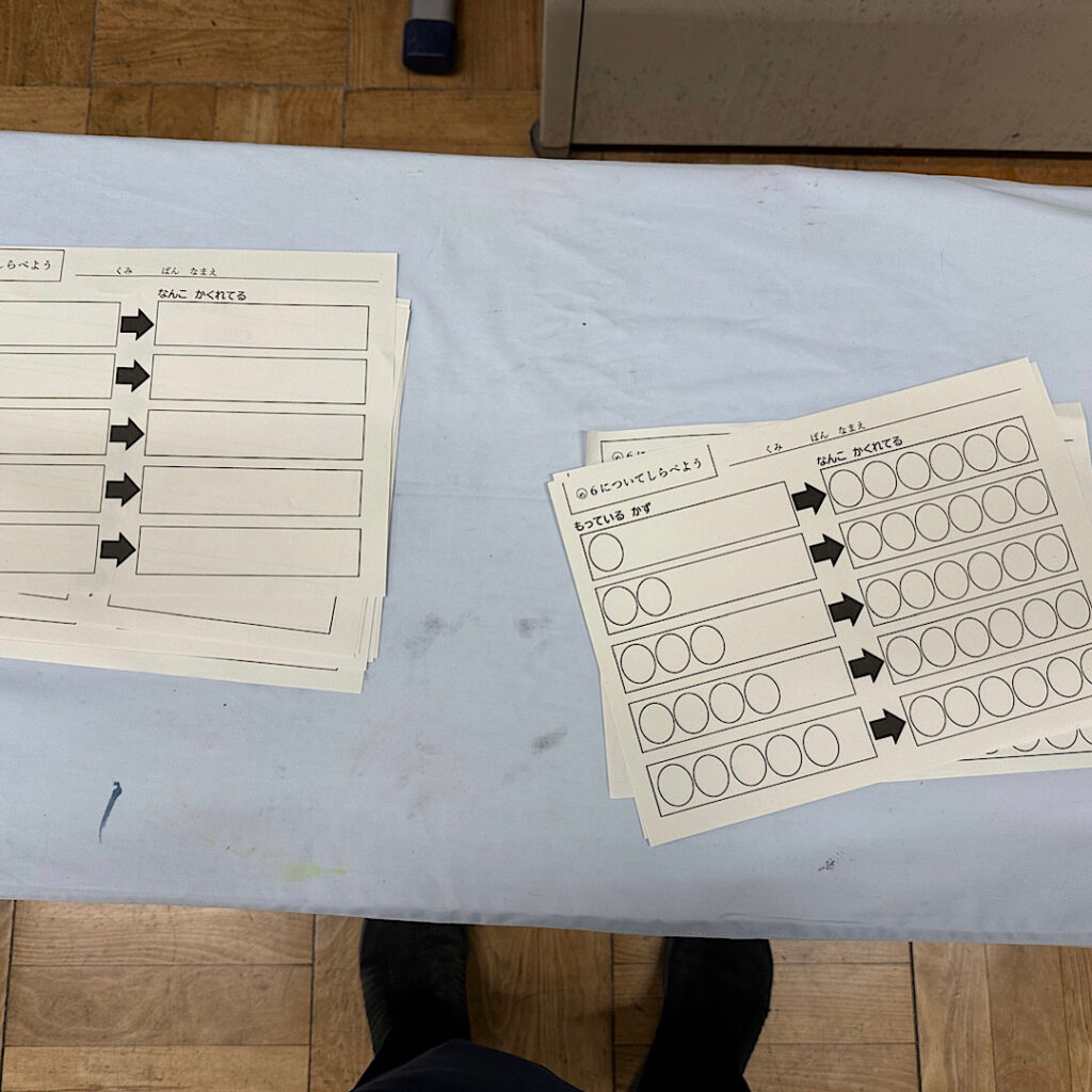5月28日(水)の4校時の1年3組では、算数の学習が行われていました。「6」に注目した学習でした。先生の「5歳の子に伝えるには」という状況設定の中で、子どもたちは夢中になって考え、発言していました。ワークシートが2種類用意されていて、自分が取り組みたいシートを選んで取り組んでいるのも素敵でした。