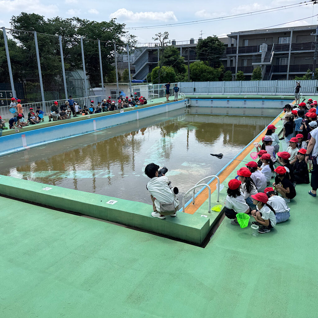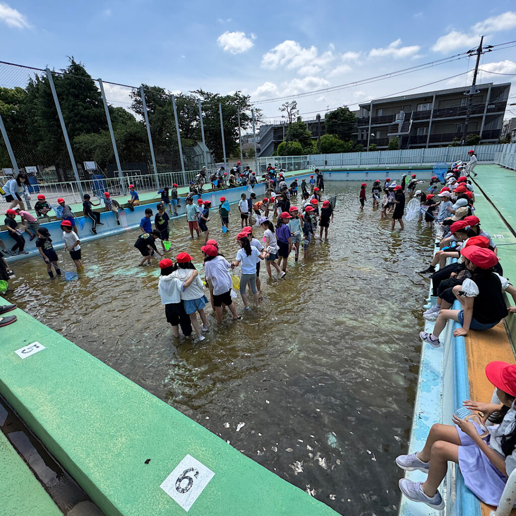 3年 総合「ヤゴ救出大作戦!」 2025年5月28日 最終更新日時 : 2025年5月28日 shinomiyashou 5月28日(水)3.4校時のプールでは、3年生がプール清掃の前にヤゴを救出しに来てくれました。ヤゴはトンボの幼虫です。ここで救出したヤゴがピカピカの羽を広げて成虫になる姿が今から楽しみです。頑張れ、3年生!