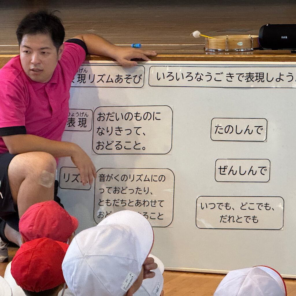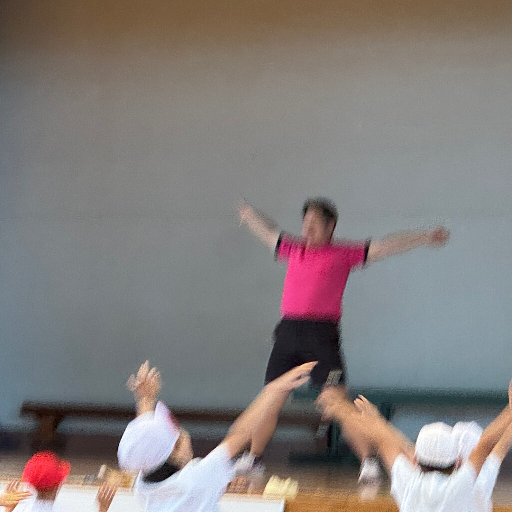 5月30日(金)の3校時の体育館では、体育の授業ご行われていました。表現リズム遊びという、心と体を解放して楽しむ運動遊びでした。先生は笑顔で汗びっしょりで授業をしていて、それにつられたのか子どもたちもたくさんの笑顔で楽しそうな1時間でした。かめはめ波をお家でもやってみてください。