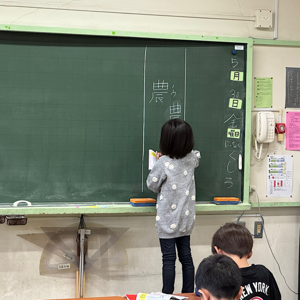 5月30日(金)1校時の3年4組では国語の授業が行われていました。最初の新出漢字の学習では、担当の子どもがみんなに読み方、書き順、熟語等を教えていました。その後、おすすめしたいこまや遊んでみたいこまを紹介する活動に入りました。タブレット使う子、数種類のワークシートを選ぶ子もいて、自分なりのスタイルで学ぶ子どもたちの姿が見られました。