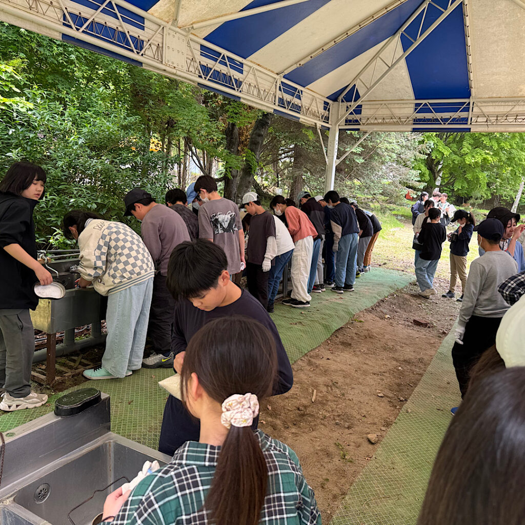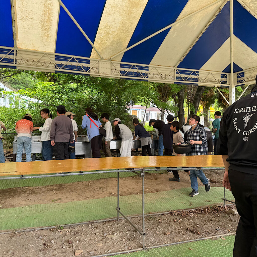 お腹いっぱい食べた後は片付けがありました。お鍋の炭がなかなか取れませんが、、子どもたちは必死になって洗っています。