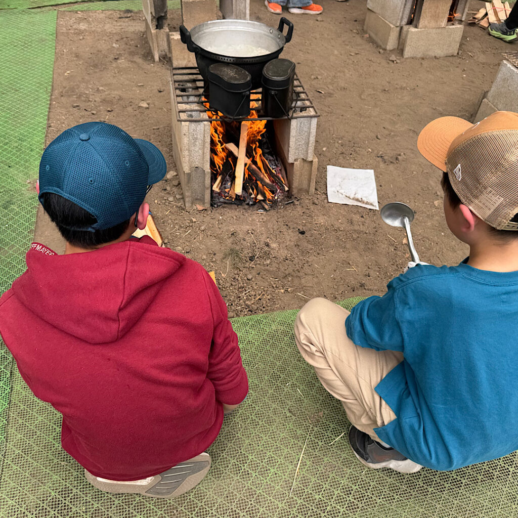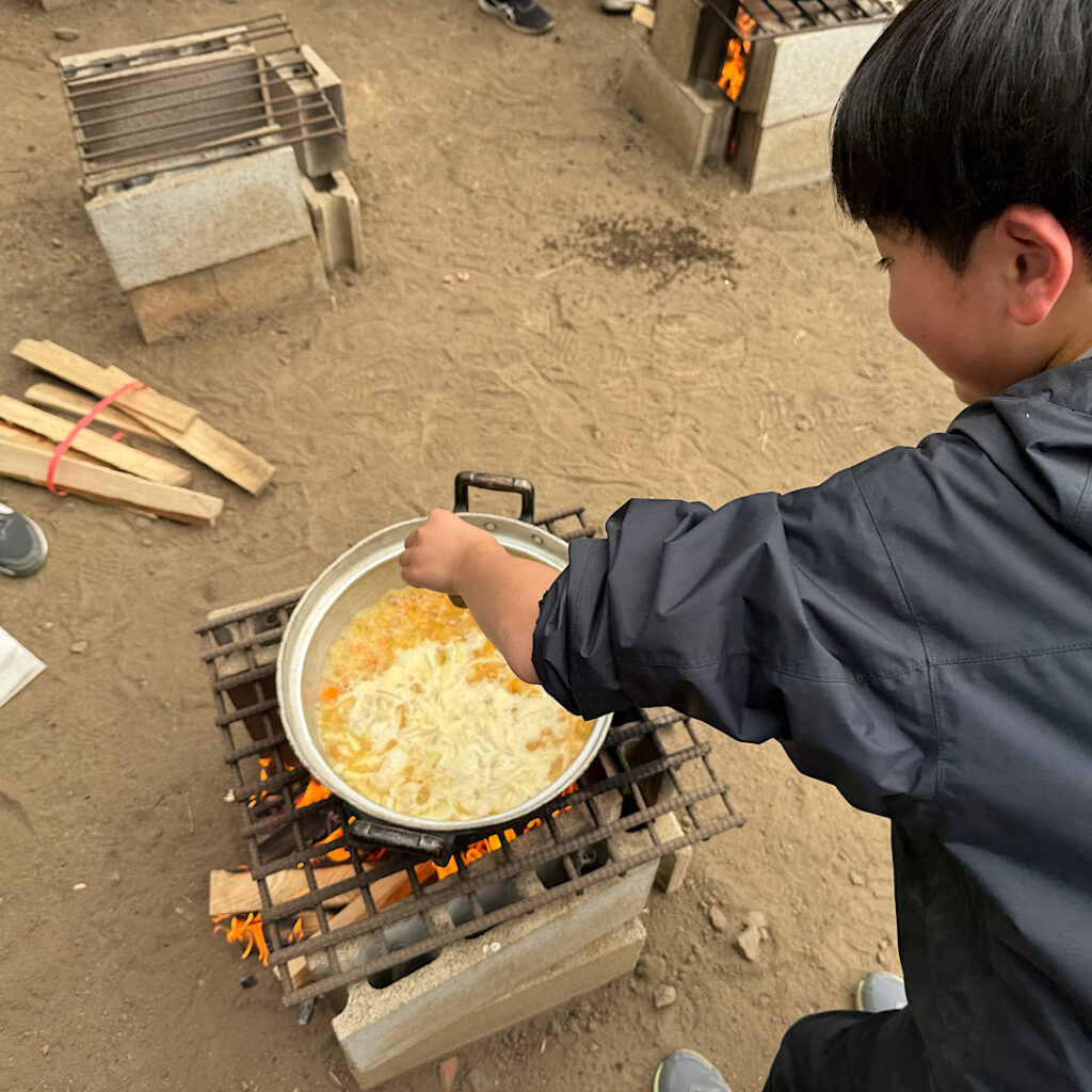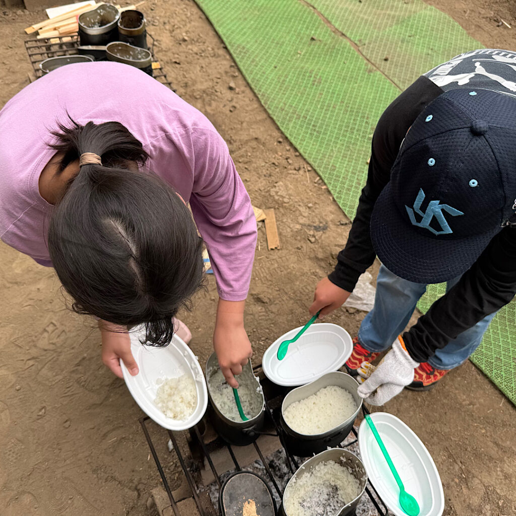 いよいよ飯盒炊爨が始まります。今日のお昼ご飯なので、きっと真剣に作ることでしょう!美味しくできるといいなぁ…。