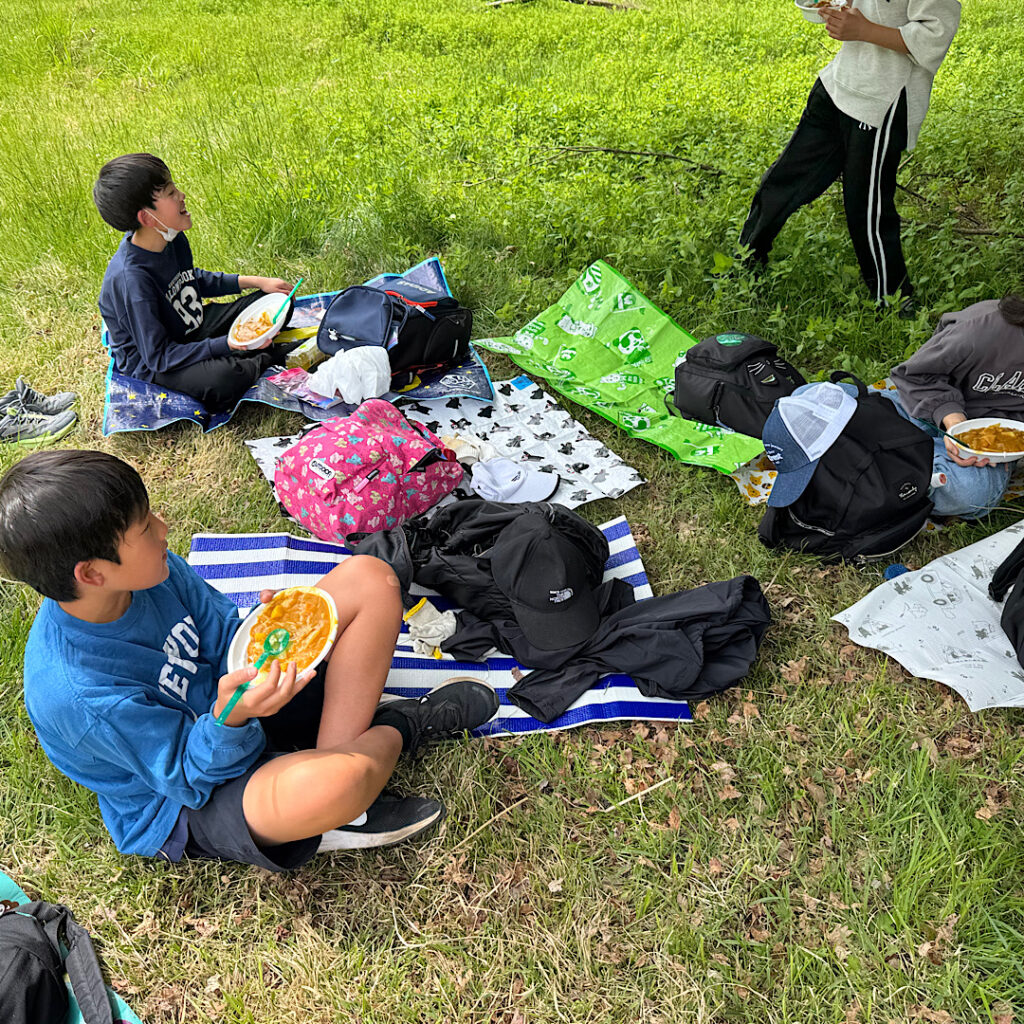 いよいよ早いグループは食べ始めました。とろとろ系があれば、スープカレー系もあり、それぞれのカレーライスが出来上がりました。自分たちで作ったカレーは日本一の味でしょうね!