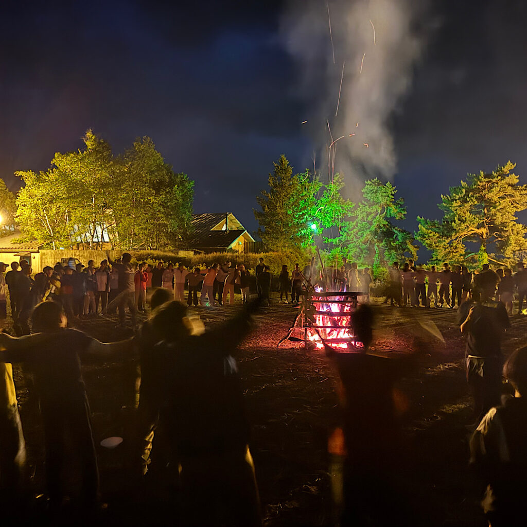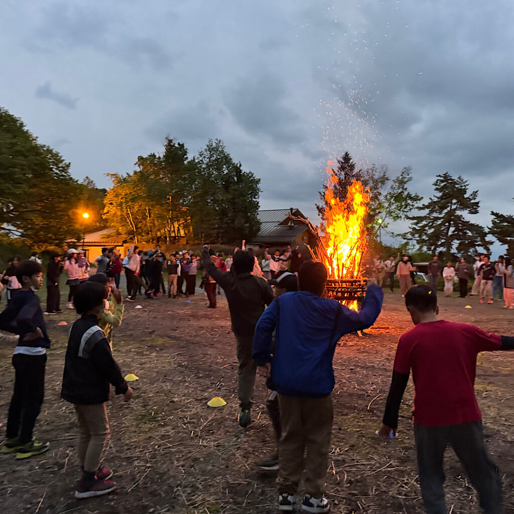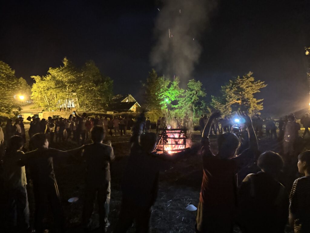 キャンプファイヤーが始まりました。火の神と火の子による点火の儀式からスタートし、ジャンボリーミッキー、ライラック、洋楽を挟んでリンダリンダとノリノリの歌と踊りでした。その後はクイズ&ゲームでした。○×クイズや猛獣狩りに行こうよで盛り上がりました。そして最後のウルトラソウルでは、アンコールが出るほどの熱気でした。終わりの言葉で「6年サイコー」のみんなの掛け声で終了しました。こんなに気持ちよく盛り上がれるのは、この6年生の素晴らしさの象徴だなぁと思いながらキャンプ場を後にしました。
