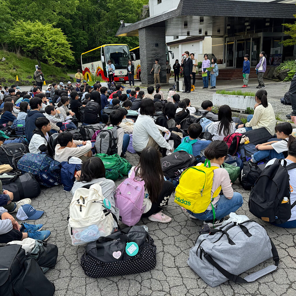 閉校式です。代表児童の言葉が大変立派で感動しました。ホテルの皆さん総出でお見送りしてくださり、子どもたちも感謝の気持ちでいっぱいでした。是非ご家族でもいらしてください。