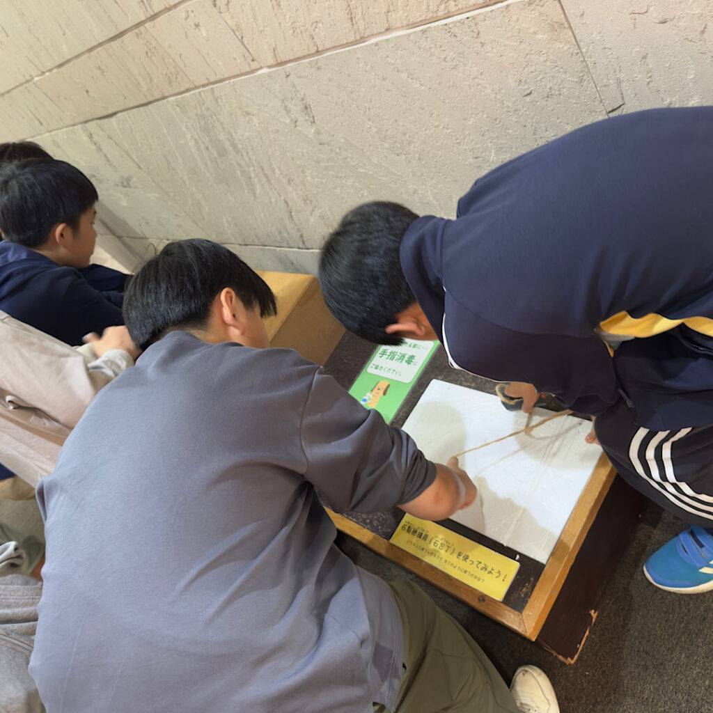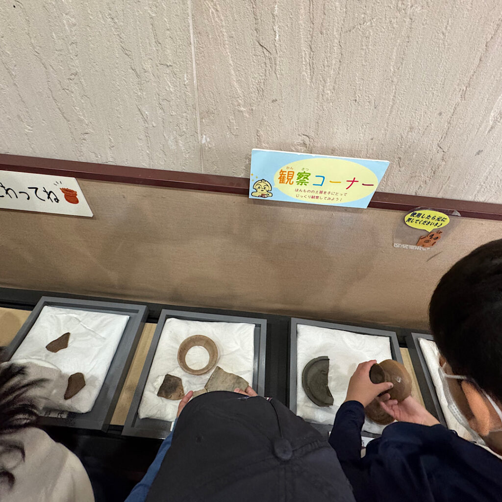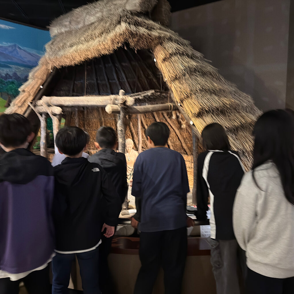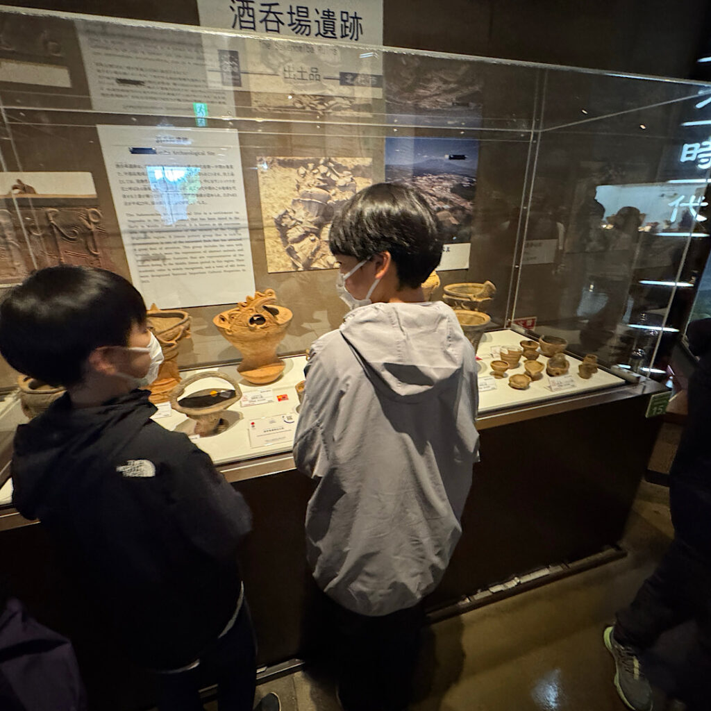 山梨県の考古博物館に来ました。1.2組と3.4組に分かれて、見学させていただきました。解説を聴きながら展示物を観ると、なるほどなぁと勉強になります。