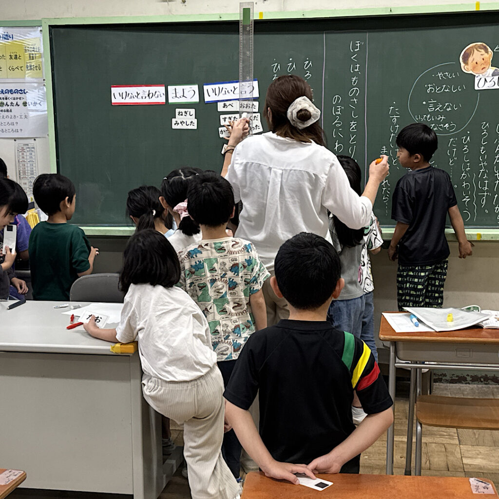 6月10日(火)5校時の2年3組では、道徳の授業が行われていました。「おれたものさし」という善悪の判断をできる力を育てることをねらっていました。子どもたちは、登場人物の気持ちを考え発表していました。後半は自分ならどうするかを「いけないと言う」「迷う」「いけないと言わない」の3つで選択し、自分ごととして考えていました。ここで学んだことを、日常の生活に生かして欲しいと思いました。