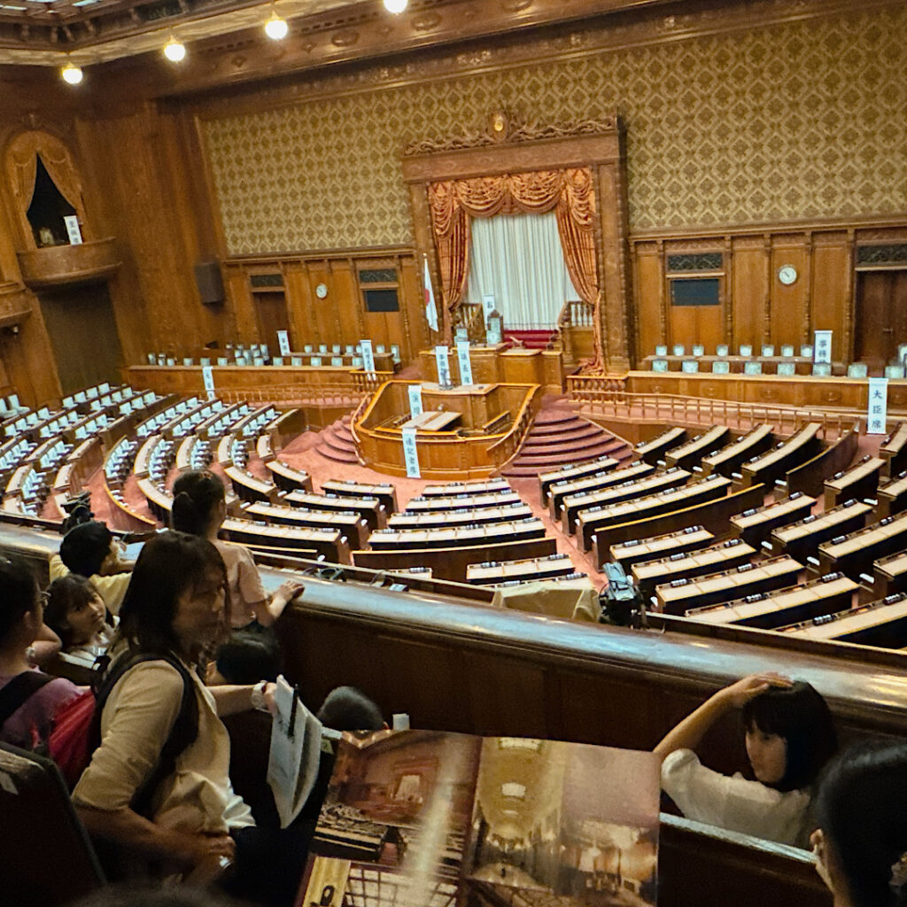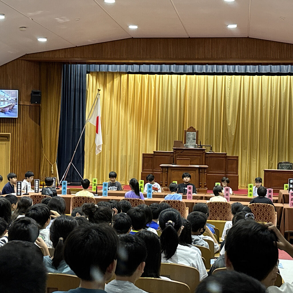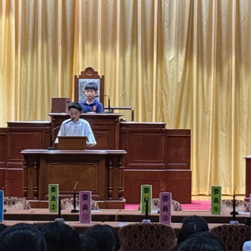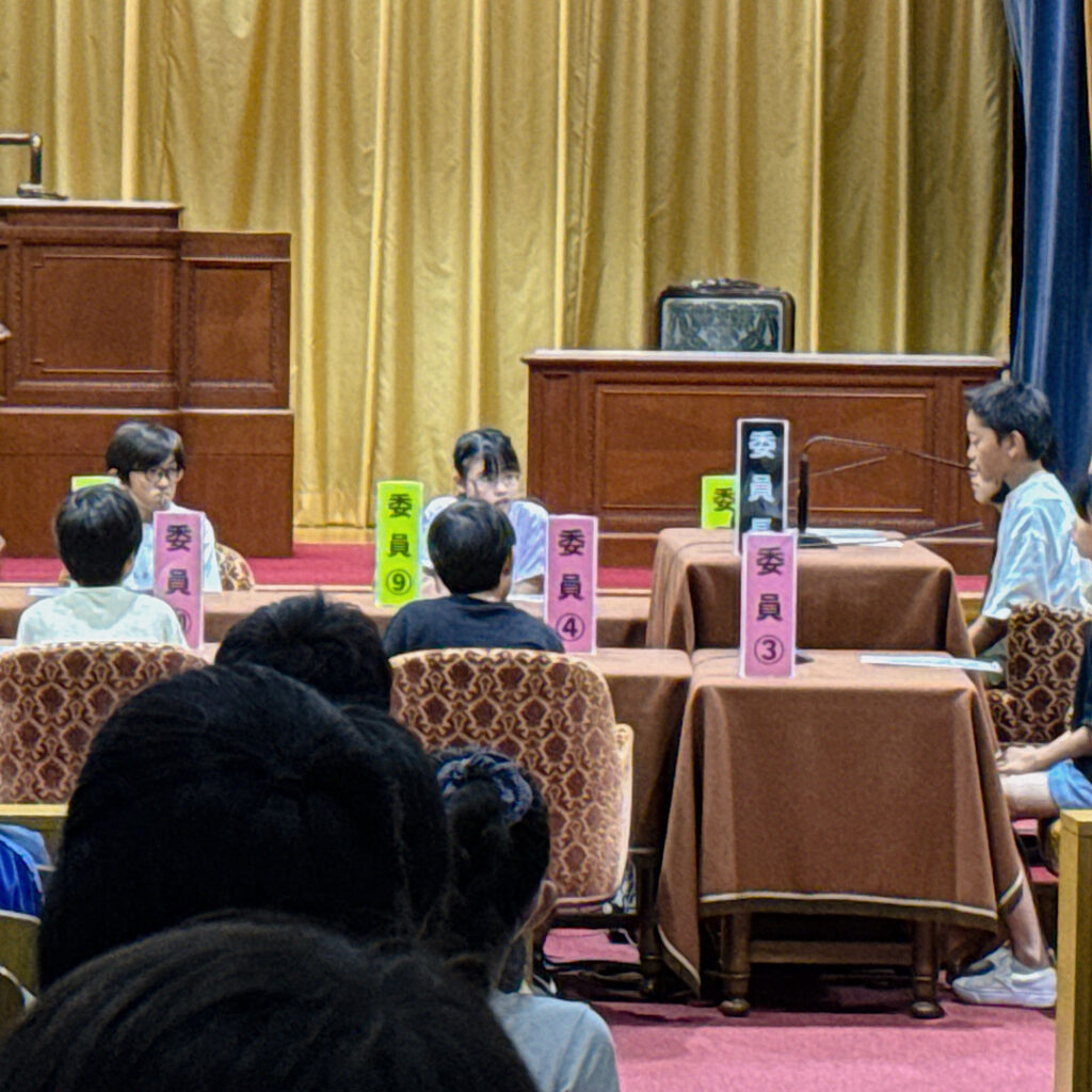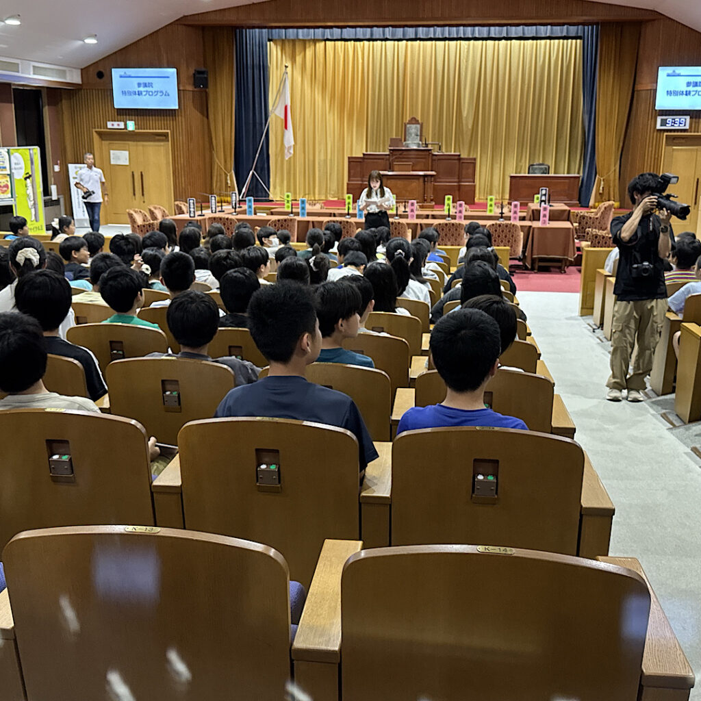 参院体験プログラムが始まりました。参加しているのは四宮小と世田谷区の学校でした。四宮小学校からも数名が委員等の役割を与えられ、ミニ国会が開催されました。