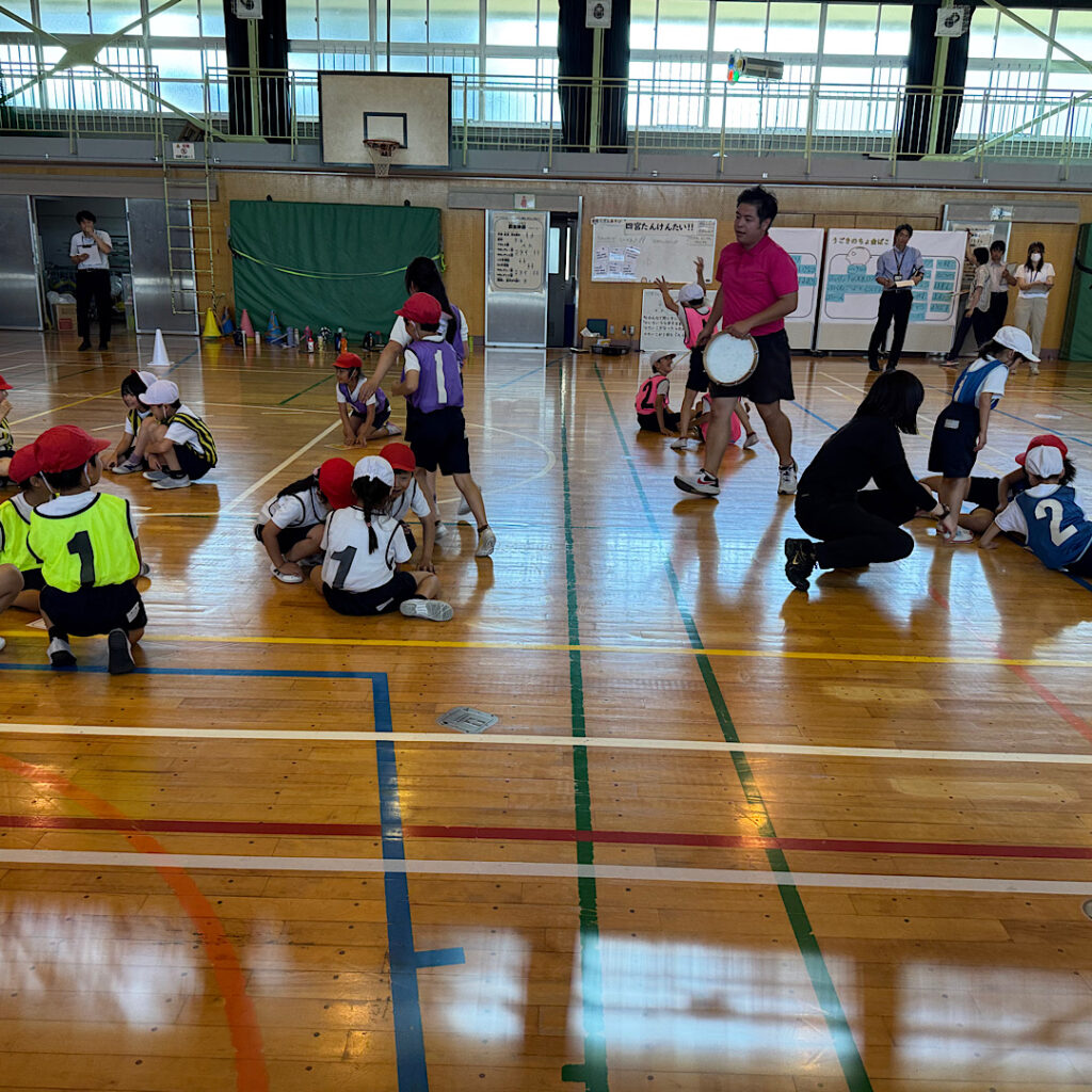 6月18日(水)の5校時の体育館では、2年1組の子どもたちが表現リズム遊びの学習に取り組んでいました。この授業は区の研究課題校の公開授業でもあったので、教育委員会をはしめ他校の先生方もたくさん参観に来てくれました。子どもたちが生き生きと動いていたことが、何より良かったなと感じました。