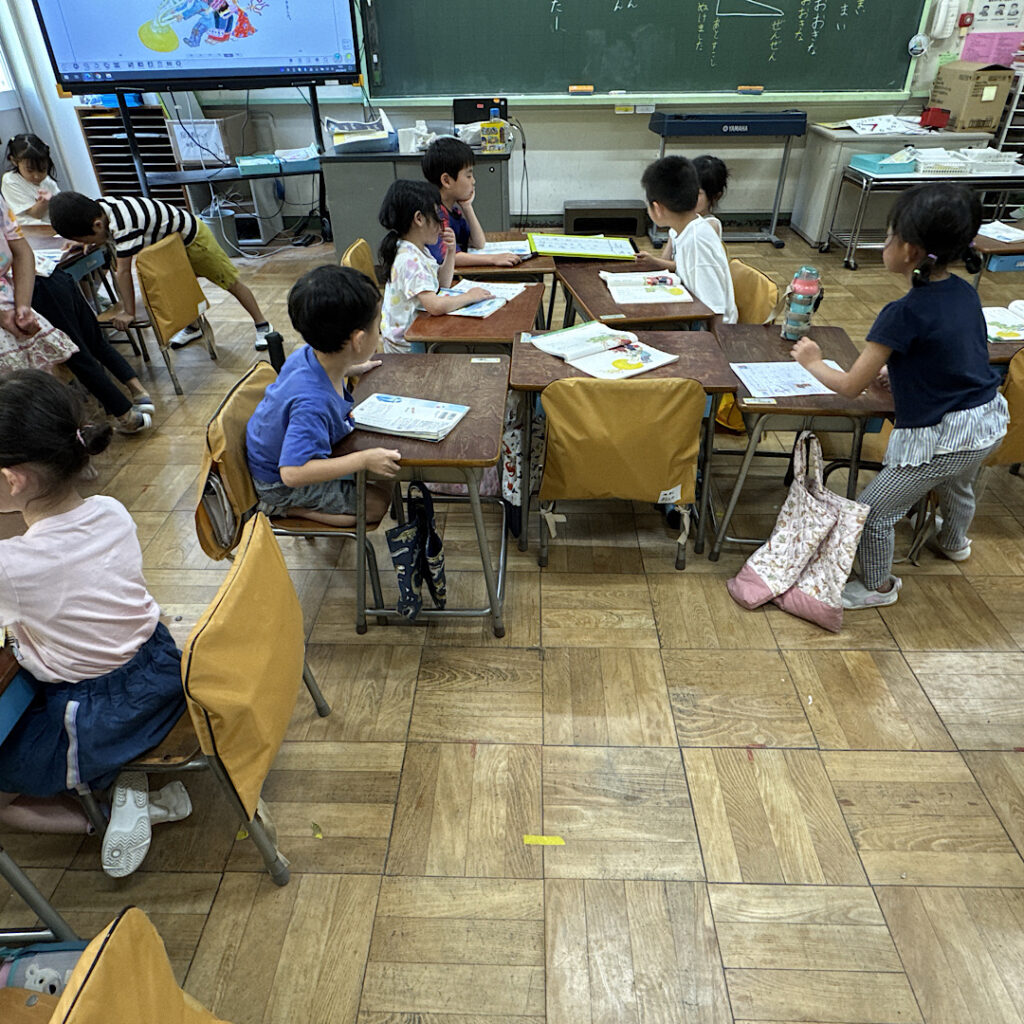 6月30日(月)3校時の1年3組では、国語の授業が行われていました。この単元おおきなかぶは、リズミカルな繰り返しのある物語で、子どもたちは音読を楽しんでいました。単元の最後には、この物語を音読劇にして発表するようで、子どもたちはそこに向けてグループごとに役割分担をして、熱心に練習に取り組んでいました。やはり目的が明確にあると子どもたちの意欲は高まるのだなと感じました。
