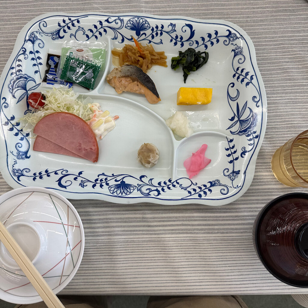 二日目の朝食です。和洋折衷のご飯でした。今日のハイキングに向けて、いっぱい食べてほしいですね。