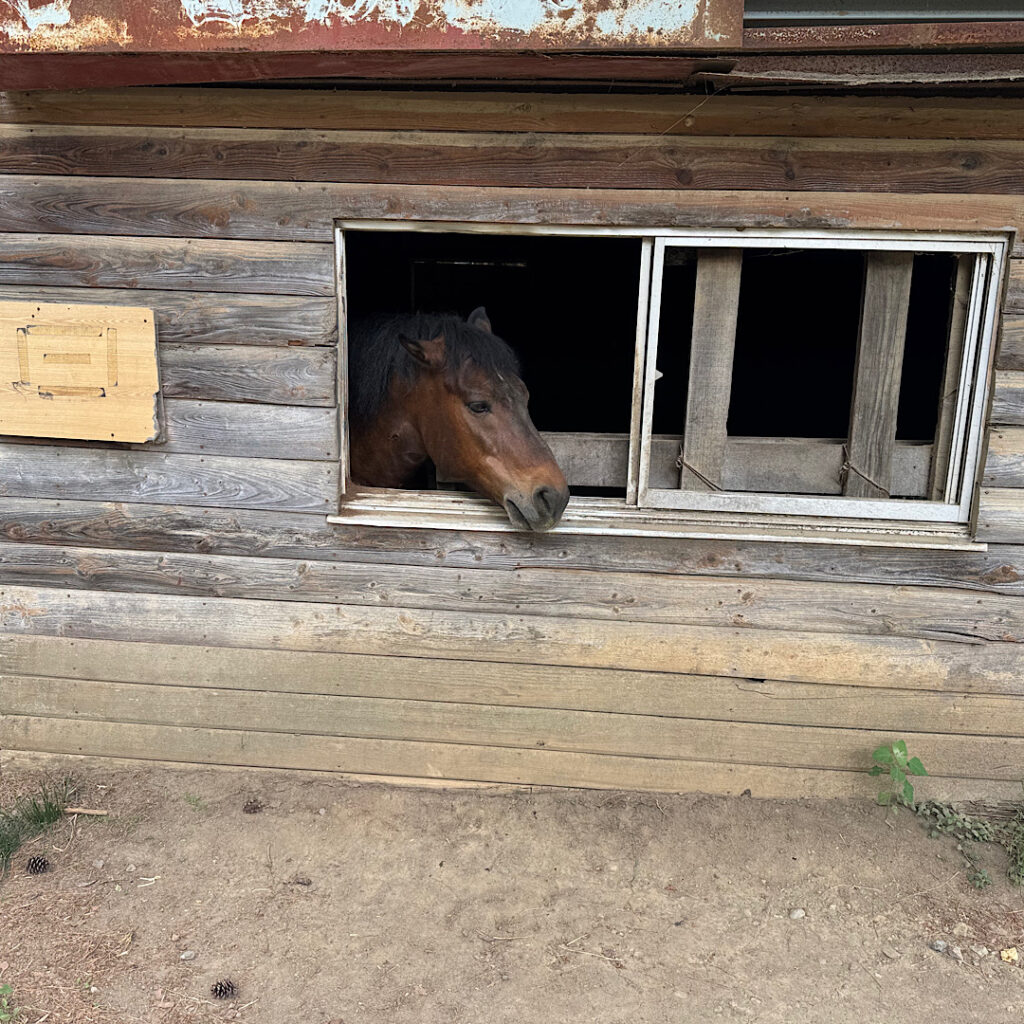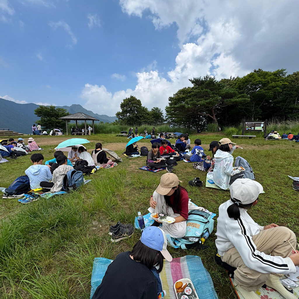 続いてもう少しハードな山登りに入りました。スタート地点では可愛いお馬さんが見送ってくれました。もうダメ〜と言いながらも何とか全員登りきり、美味しいお弁当を食べることができました。